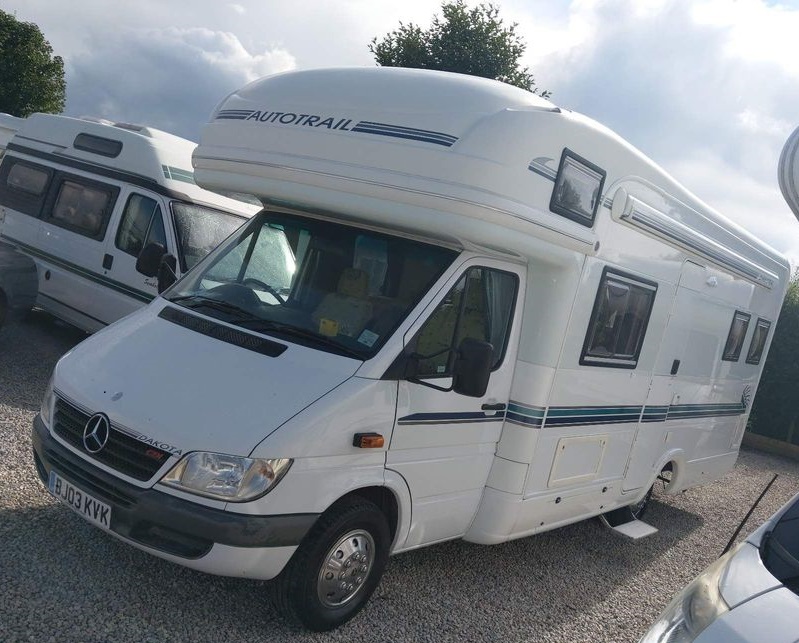 Fantastic opportunity to acquire a top of the range Motorhome built in an era when quality was paramount. This Autotrail is on the most desirable Mercedes Sprinter chassis with the favored 2.7 cdi 5 cylinder engine coupled with the acclaimed fully automatic tiptronic gearbox. Current isn’t another Mercedes Dakota on sale. The habitation is opulent with ample sleeping accommodation, although sadly only 2 belts as was customery at the time. Also a compact, but functional washroom, with origami style shower cubicle and electric flush toilet. TV mounted for viewing from the lounge or rear fixed bed. The kitchen hosts a full oven, grill and hob with 3 gas and an electric ring. 3 way fridge, plenty workspace and room for a microwave if required. There are flyscreens and blinds to all the windows, onboard fresh and waste water tanks, dual fueled blown air heating and hot water, separate leisure battery and plenty of instruction manuals. Condition is superb and it comes fully checked with a habitation certificate, 42,500 miles